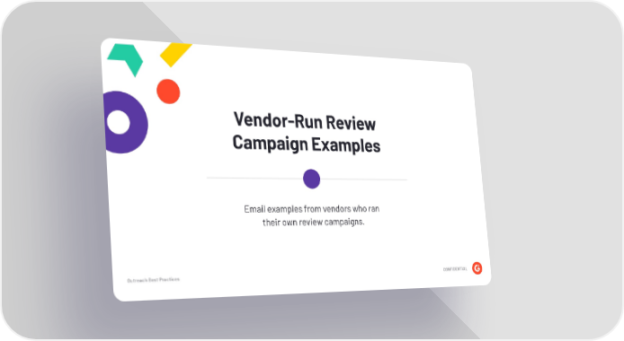 Outreach Best Practices Deck Page 13 Page 15CONFIDENTIAL Vendor-Run Review Campaign Examples Email examples from vendors who ran their own review campaigns. Outreach Best Practices