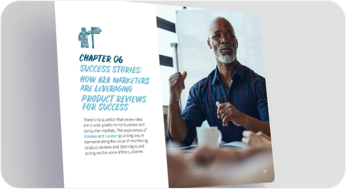 CHAPTER 06 SUCCESS STORIES: How b2b marketers are Leveraging PRODUCT REVIEWS FOR SUCCESS There’s no question that review sites are crucial platforms for business and consumer markets. The experiences of Kimble and Looker go a long way in demonstrating the value of monitoring product reviews and listening to and acting on the voice of the customer. 19