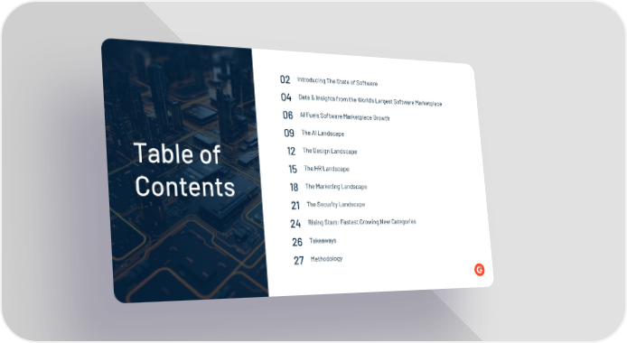 Introducing The State of Software 02 Data & Insights from the World’s Largest Software Marketplace 04 AI Fuels Software Marketplace Growth 06 The AI Landscape 09 The Design Landscape 12 Table of The HR Landscape 15 The Marketing Landscape 18 Contents The Security Landscape 21 Rising Stars: Fastest Growing New Categories 24 Takeaways 26 Methodology 27
