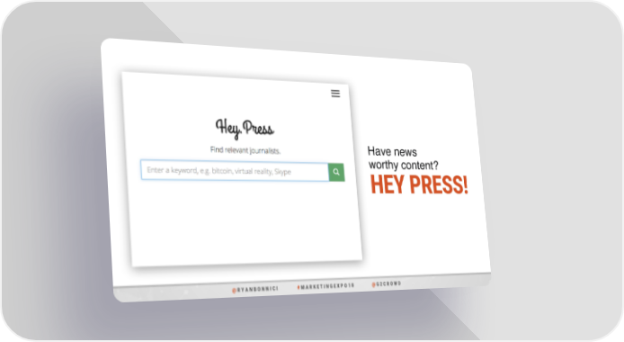 Have news worthy content? HEY PRESS! @ R Y A N B O N N I C I # M A R K E T I N G E X P O 1 8 @ G 2 C R O W D