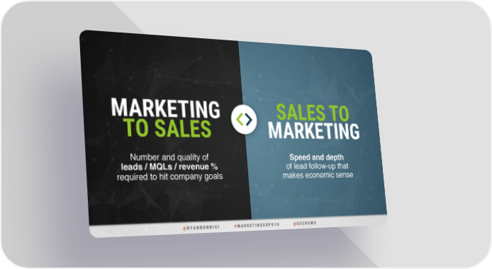 MARKETING SALES TO TO SALES MARKETING Number and quality of Speed and depth leads / MQLs / revenue % of lead follow-up that required to hit company goals makes economic sense @ R Y A N B O N N I C I # M A R K E T I N G E X P O 1 8 @ G 2 C R O W D