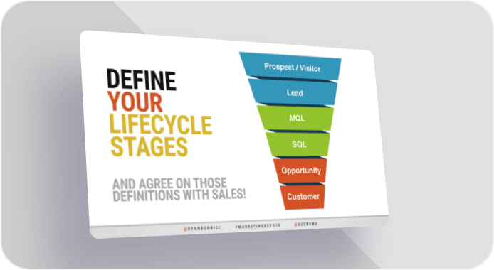 DEFINE PrProossppeecctt // VVisiistiotor r YOUR LeadLead LIFECYCLE CuMQstomeL r STAGES SQL AND AGREE ON THOSE Opportunity DEFINITIONS WITH SALES! Customer @ R Y A N B O N N I C I # M A R K E T I N G E X P O 1 8 @ G 2 C R O W D