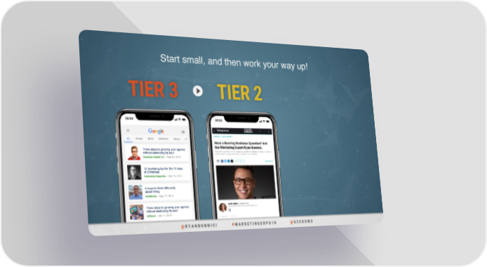 Start small, and then work your way up! TIER 3 TIER 2 Three steps to growing your agency without destroying its soul Business Insider AU – Sep 30, 2016 12 marketing tips for the 12 days of Christmas Marketing Magazine – Dec 19, 2015 5 ways to think differently about hiring MuMbrella – May 17, 2014 Three steps to growing your agency without destroying its soul AdNews – Jan 11, 2013 @@ RR YY AA NN B B OO NN NN II CC II ## MM AA RR KK EE TT II NN G G EE XX PP OO 11 88 @@ G G 22 CC RR OO W W DD