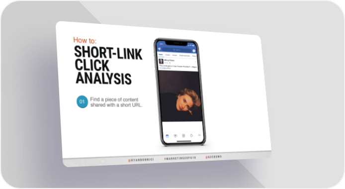 How to: SHORT-LINK CLICK ANALYSIS 01 Find a piece of content shared with a short URL. @ R Y A N B O N N I C I # M A R K E T I N G E X P O 1 8 @ G 2 C R O W D