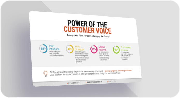 POWER OF THE CUSTOMER VOICE Transparent Peer Reviews Changing the Game % Peer % Word % Online % Purchasing 53 influence 48 of mouth 85 reviews 84 choices of tech buyers of tech buyers of tech buyers of Americans rely on peer report that word of read up to 10 say online reviews recommendations. mouth from peers online reviews influence their frequently changes before making purchasing their business a purchase. decisions. priorities. G2 Crowd is on the cutting edge of the transparency movement – shining a light on software purchases via a platform for modern buyers to interact with peers in an insightful and relevant way. @ R Y A N B O N N I C I # M A R K E T I N G E X P O 1 8 @ G 2 C R O W D