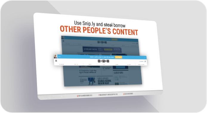 Use Snip.ly and steal borrow OTHER PEOPLE’S CONTENT @ R Y A N B O N N I C I # M A R K E T I N G E X P O 1 8 @ G 2 C R O W D